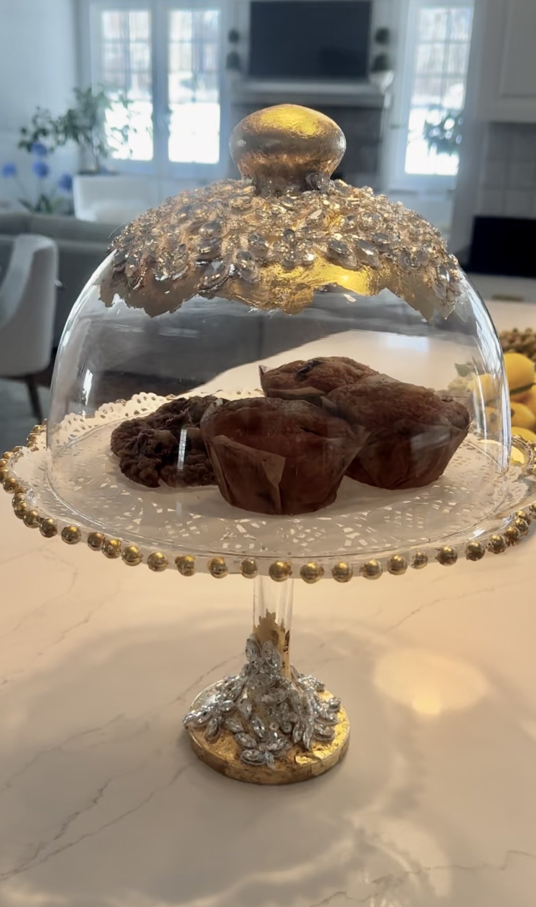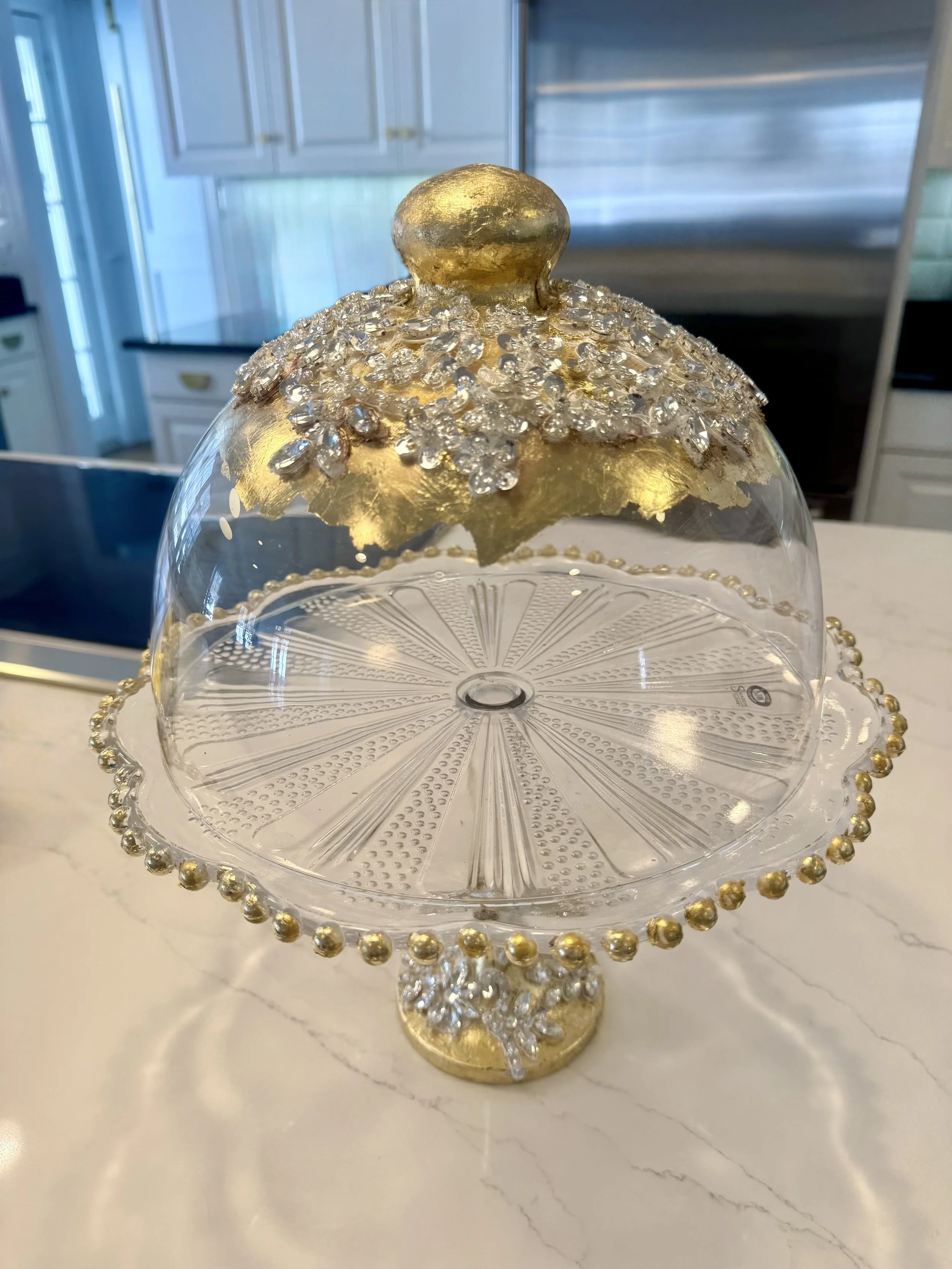 Gold Leaf + Rhinestone Bejeweled Cake Dish