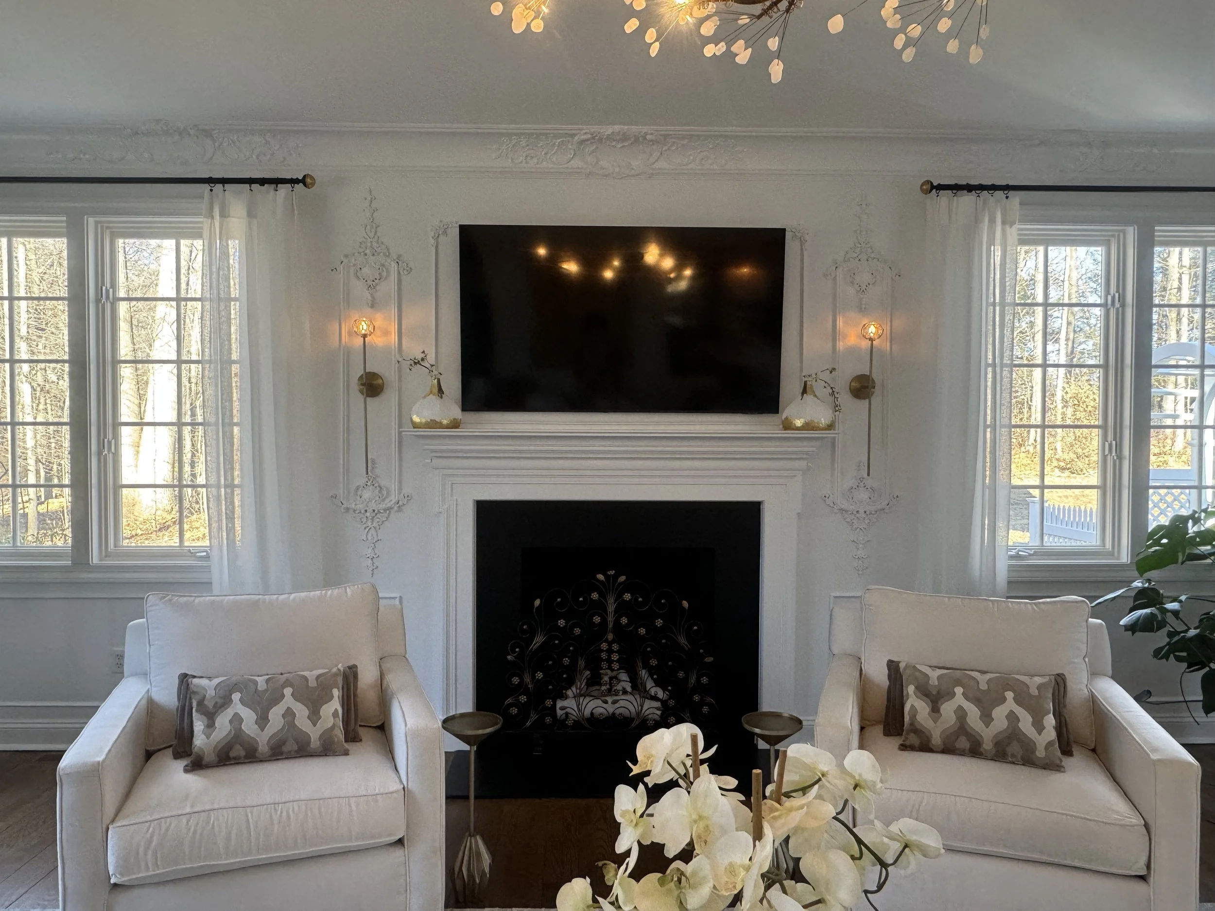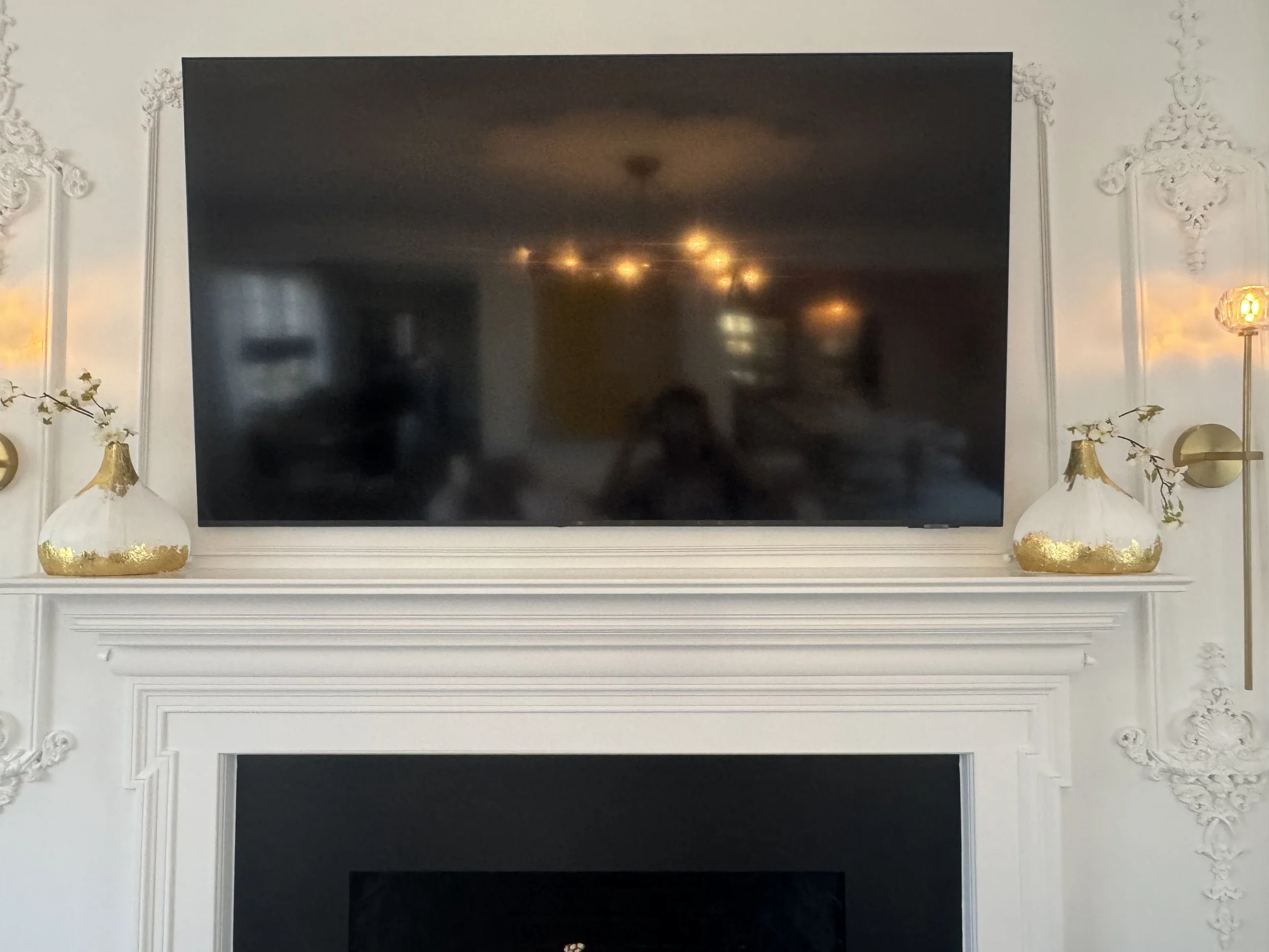 Gold Leaf + White Painted Twin Fireplace Mantel Vases