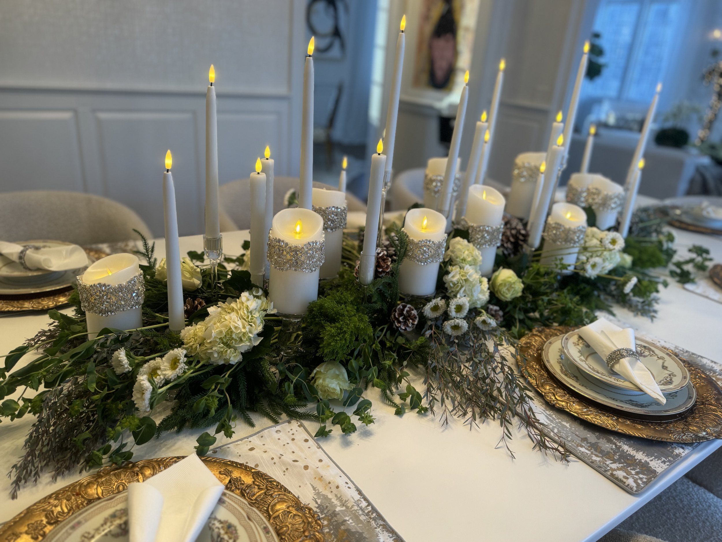 The secret to success lies in the details—like hydrating each stem with hidden vials and layering greenery, filler flowers, and bold blooms to achieve that perfect balance. This method works well beyond the holidays, too! Swap out seasonal touches like pinecones for springtime florals, autumn leaves, or even summer blooms to keep your table decor fresh and on-trend year-round.